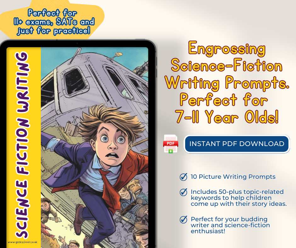 Blast off into the future with our ’11 Plus Science Fiction Writing Prompts’ booklet!